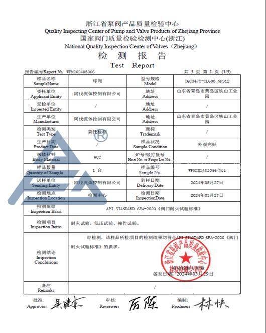 API 6FA防火证书是石油天然气行业阀门防火性能的重要认证,要求阀门在火灾等极端情况下仍能保持一定的密封性能,阻止火势蔓延,保障人员安全。AFA一直非常重视产品质量和技术创新,此次API 6FA证书的获得,标志着公司在阀门防火性能方面的技术实力得到了行业的高度认可,也印证了我司上装C型耐磨球阀在各类严苛工况下的适应性。